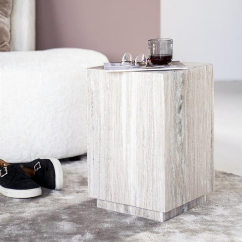 Der Beistelltisch Vince verbindet pures Design mit der Schönheit von Naturstein. Gefertigt aus edlem beigem Marmor mit einzigartiger Maserung ist jeder Tisch ein echtes Unikat. Die schlichte Form bringt die natürliche Struktur des Steins besonders zur Geltung und verleiht deinem Zuhause einen Hauch zeitloser Eleganz.