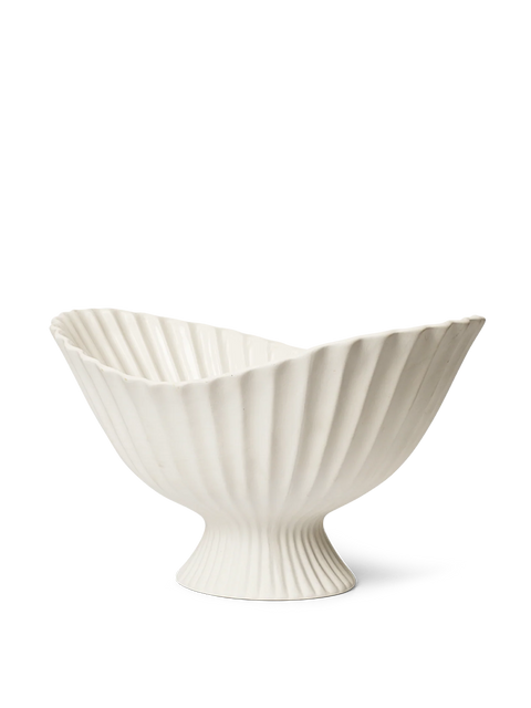 Die skulpturale Fountain-Dekoschale aus Keramik fällt durch ihre weiche, gefältelte Optik sofort ins Auge. Sie ist von der Form eines klassischen Brunnens inspiriert und kann für Schmuck und Ähnliches, zum Servieren von Süßigkeiten oder eigenständig als Dekorationsobjekt verwendet werden. Die Fountain-Dekischale, die sich für die Aufbewahrung einer Vielzahl verschiedener Gegenstände eignet, ist außen matt und hat innen eine klare Glasur.