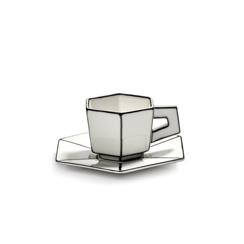 Espressotasse mit Untersetzer Carte Blanche – Porzellan Espressotasse Schwarz/Weiß von Serax