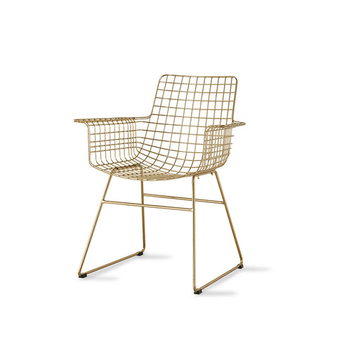 Stuhl Metall Wire mit Armlehnen Messing - HK Living